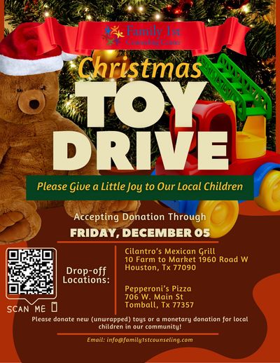 At Family 1st Counseling Center Inc., we believe every child deserves to feel valued, supported, and loved—especially those in care. This season, we’re giving back to help bring smiles and hope to children and families in our community. Through our toy drive and outreach efforts, we aim to spread joy, create lasting memories, and remind each child that they matter. Together, we can make a difference—one act of kindness at a time.